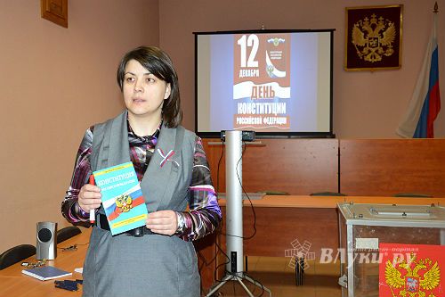 12 декабря в Территориальной избирательной комиссии Великолукского района прошло мероприятие, приуроченное к государственному празднику — Дню Конституции России.