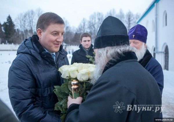 21 января, губернатор Псковской области Андрей Турчак посетил Спасо-Елеазаровский монастырь, где встретился с Главой Псковской Митрополии, митрополитом Псковским и Порховским Евсевием и епископом Великолукским и Невельским Сергием.