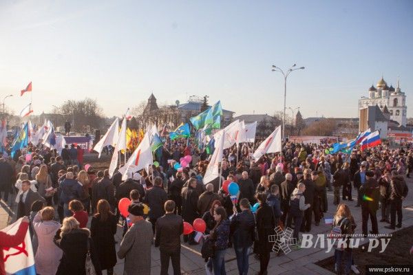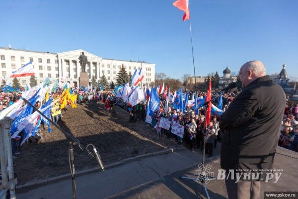 Пять тысяч жителей Пскова приняли участие в митинге по случаю воссоединения России и Крыма (фото)