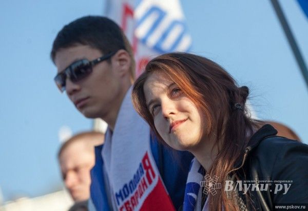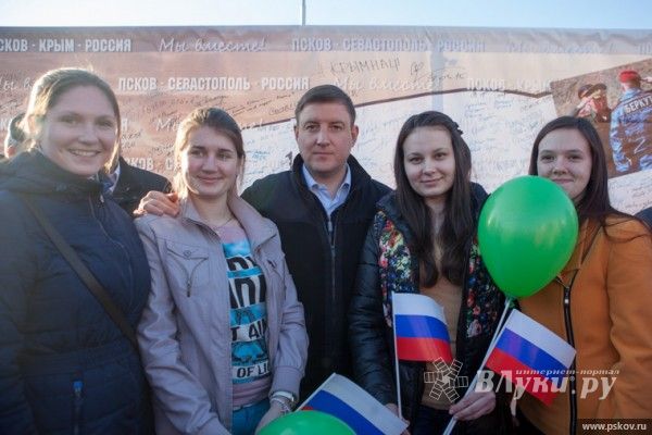 Почти 5 тыс человек приняли участие в митинге-концерте «Мы вместе» в поддержку воссоединения России с Крымом, который прошел среду, 18 марта, в Пскове.