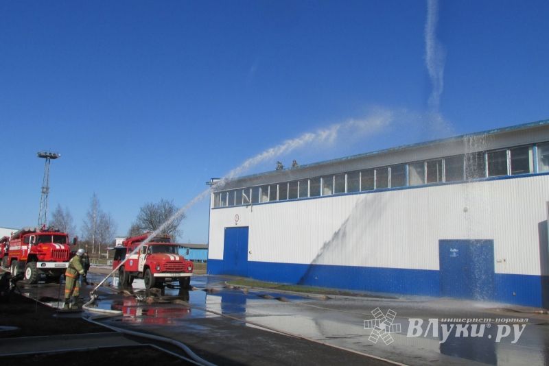 Администрация объекта сообщила о пожаре по телефону «01» на центральный пульт пожарной связи г. Великие Луки и в службу пожарной охраны предприятия, так как к тому моменту создалось угроза распространения пожара в смежные помещения, разрушений металлических конструкций кровли здания. При участии 25 человек личного состава отряда, прибывшего на четырех автоцистернах и одной автолестнице, условный пожар был потушен в установленные сроки.