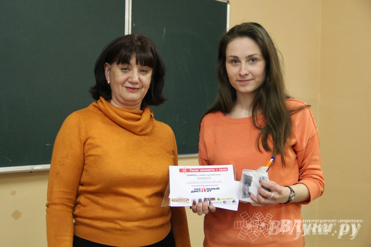 18 апреля 2015 года в городе Великие Луки «Тотальный диктант» написали 126 человек. Диктант на пяти площадках: