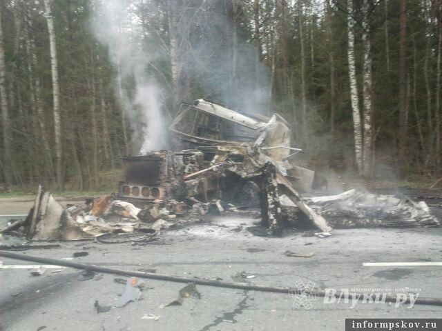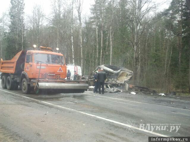 Движение по трассе перекрыто частично, регулируется сотрудниками ДПС до полной ликвидации пожара. На месте работают пожарные расчеты отдельного пожарного поста «Новоселье» и ПЧ-30, оперативная группа ФКУ «ЦУКС Главного управления МЧС России по Псковской области», бригада «скорой медицинской помощи».