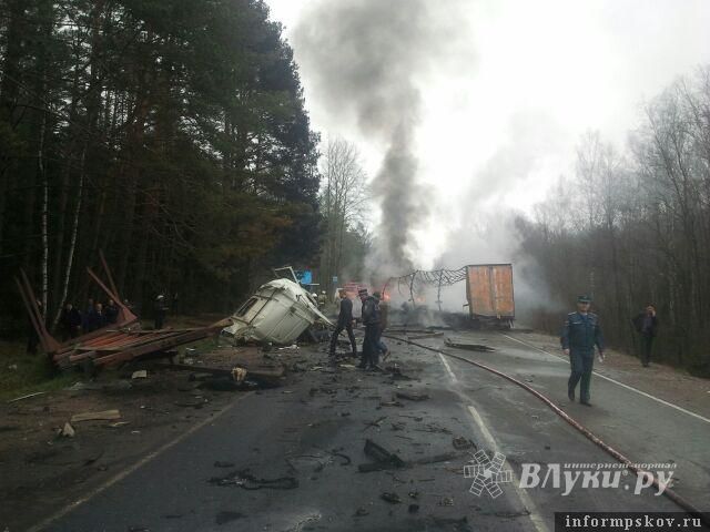 Сегодня в 09:36 в оперативную дежурную смену от диспетчера ПЧ-30 поступила информация о том, что в 10 км от деревни Цапелька Стругокрасненского района (253 км трассы М-20) произошло ДТП. Столкнулись 2 грузовых автомобиля (фуры) и 2 легковых автомобиля с последующий возгоранием. Об этом Интернет-порталу ВЛУки.ру сообщили в пресс-службе ГУ МЧС РФ по Псковской области.