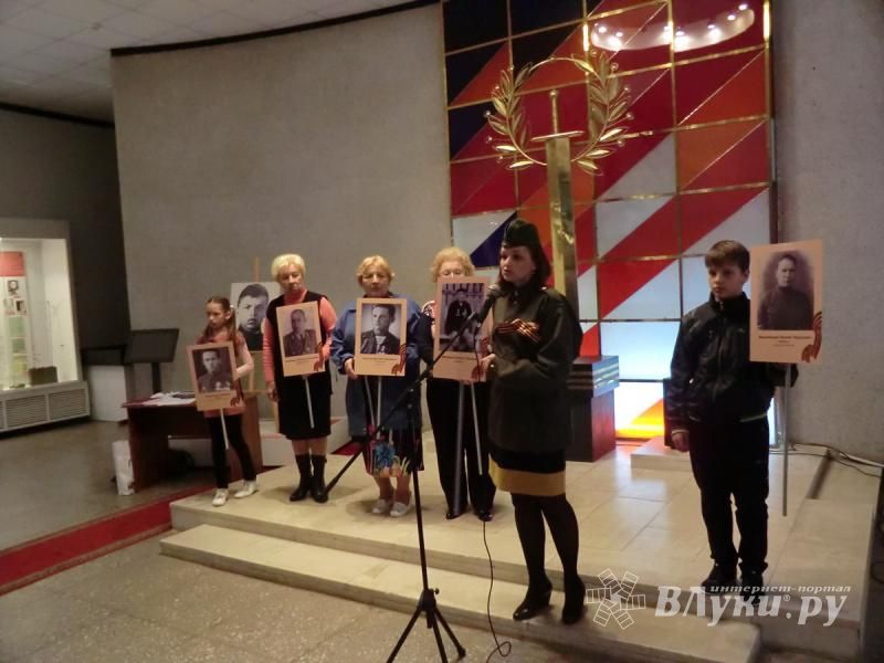 Впервые Краеведческий музей города Великие Луки принял участие во всероссийской акции «Ночь в музее» в ночь на 17 мая, с программой посвященной событиям Великой Отечественной войны. Основной девиз музейной ночи - новизна, открытость, доступность. Прологом стало выступление артистов театральной студии на главной лестнице музея с поэтической композицией «Строки, опаленные войной».