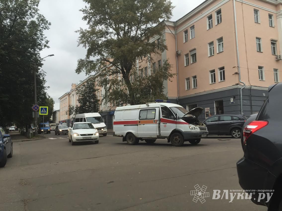 В Великих Луках на ул. Некрасова, напротив городской администрации, поломалась карета Скорой помощи, тем самым затруднив движение.