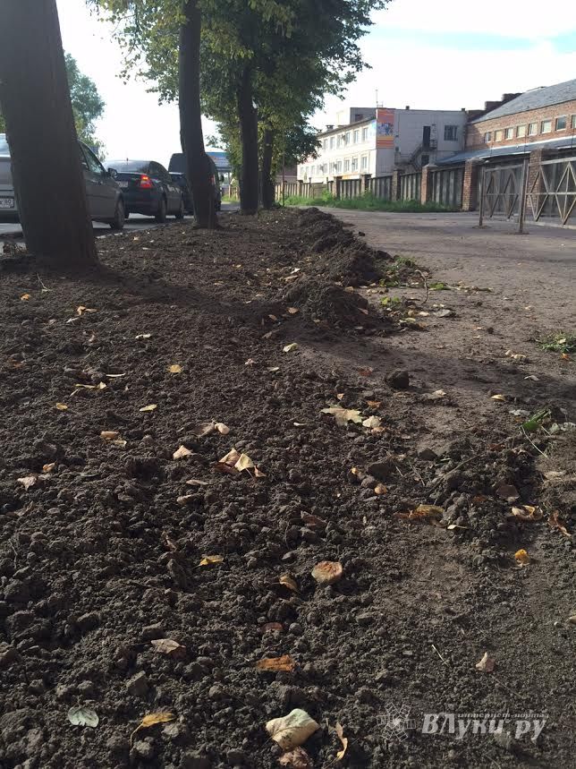 Фотофакт: В Великих Луках на проспекте Октябрьском перерыты газоны