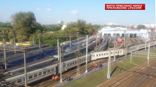 На Рижском вокзале Москвы два вагона сошли с рельсов (фото)