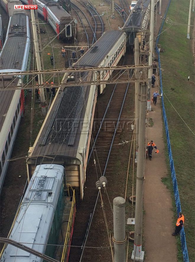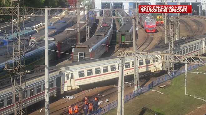 Сегодня около 11:30 утра около Рижского вокзала в Москве сошли с рельсов два вагона электрички, находящихся в середине состава. К счастью, в момент инцидента в поезде не было пассажиров и никто не пострадал.