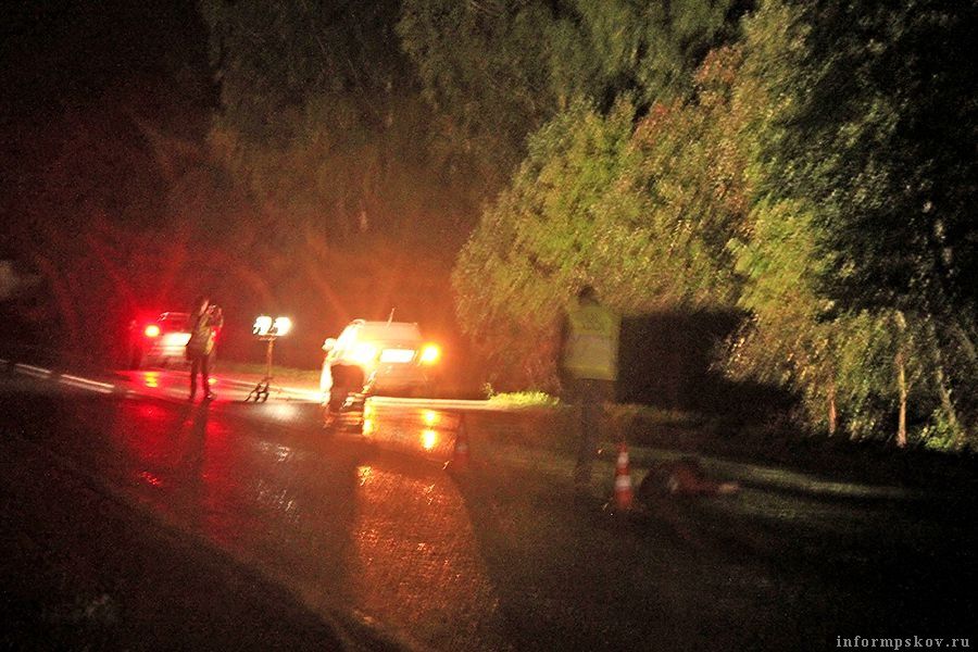 Инспекторы ГИБДД производили осмотр участка дороги с помощью прожекторов, в результате чего движение в сторону Изборска было затруднено: проезд осуществлялся по встречной полосе.