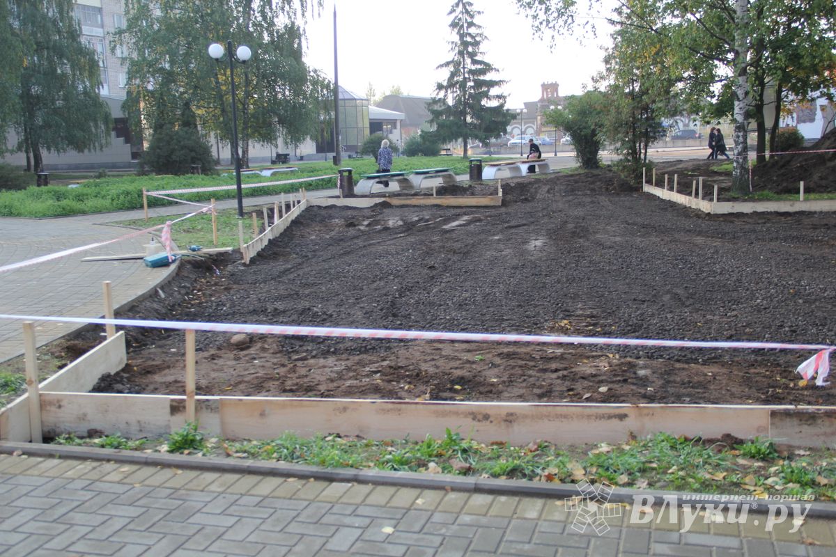 В рамках программы подготовки к празднованию 850-летия со дня основания города в Великих Луках продолжается реконструкция сквера на площади Калинина.