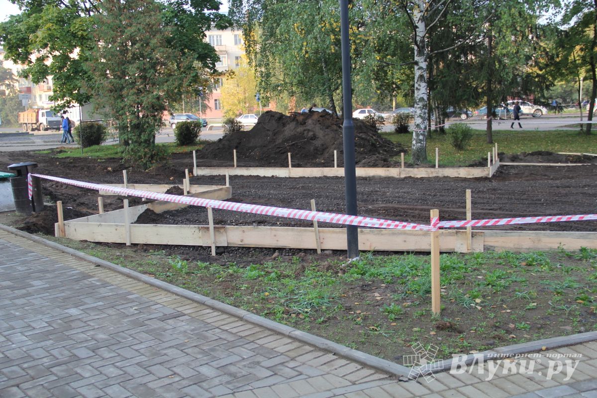 В Великих Луках продолжается реконструкция сквера на площади Калинина (фото)