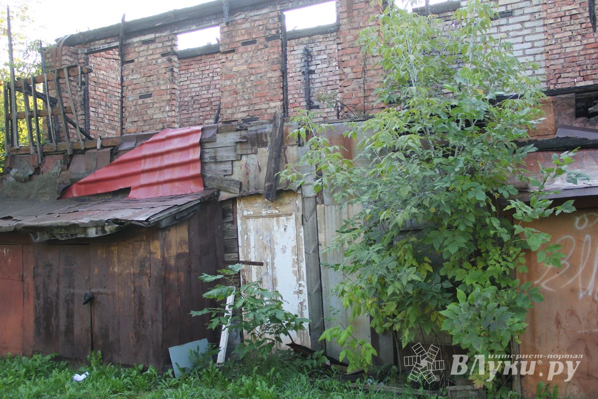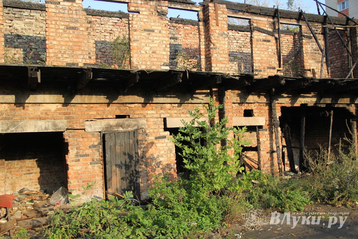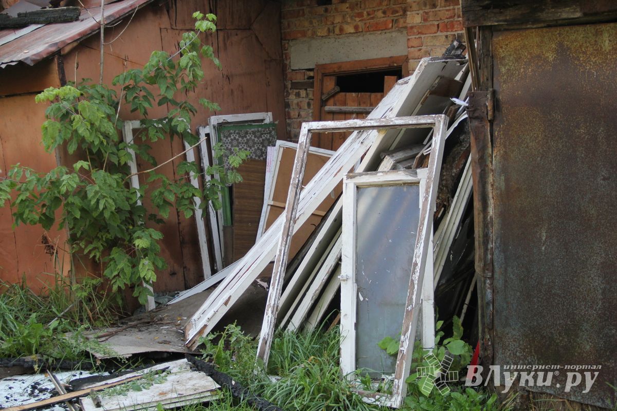 Фотофакт: Горелые сараи в центре Великих Лук превращаются в свалку (фото)