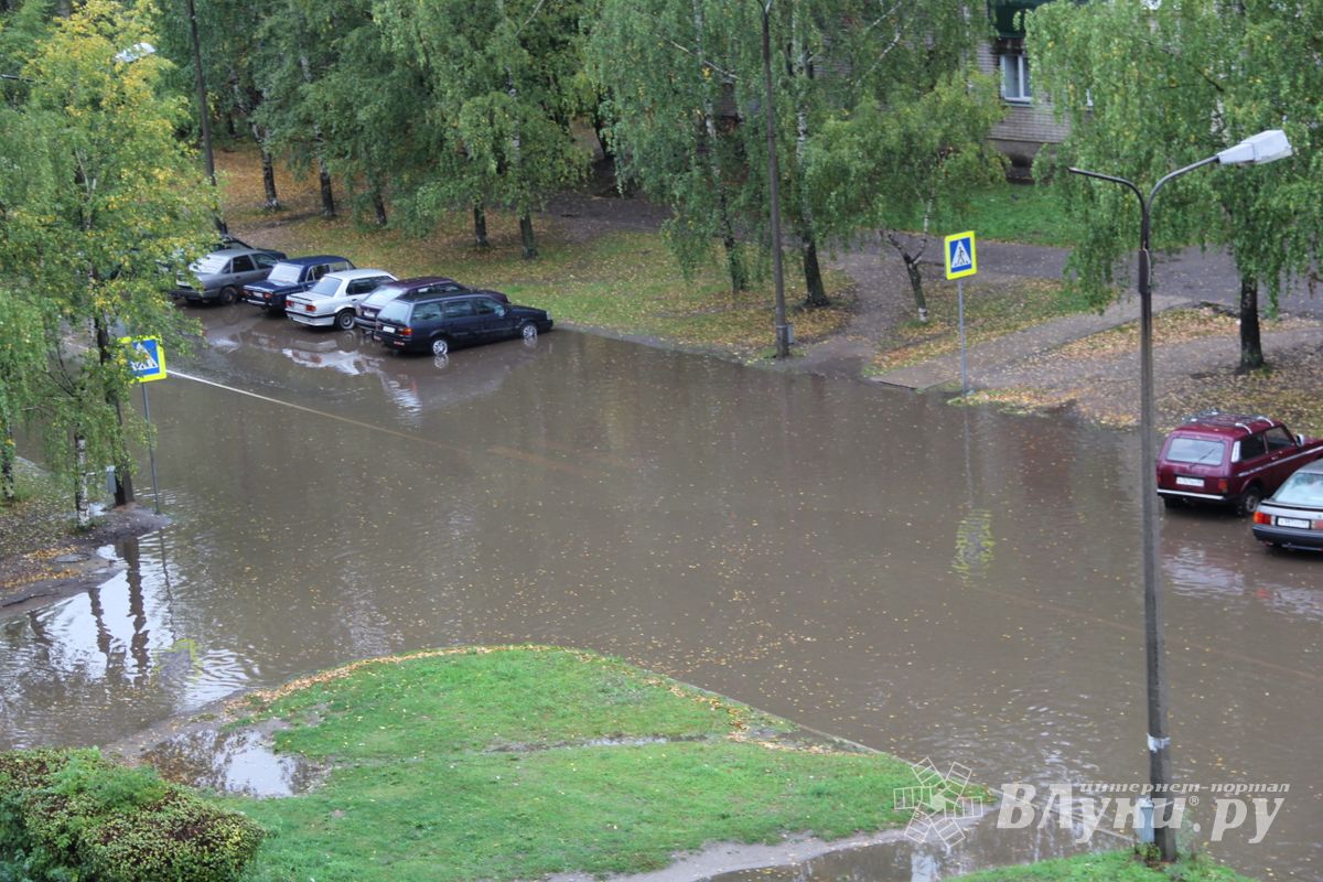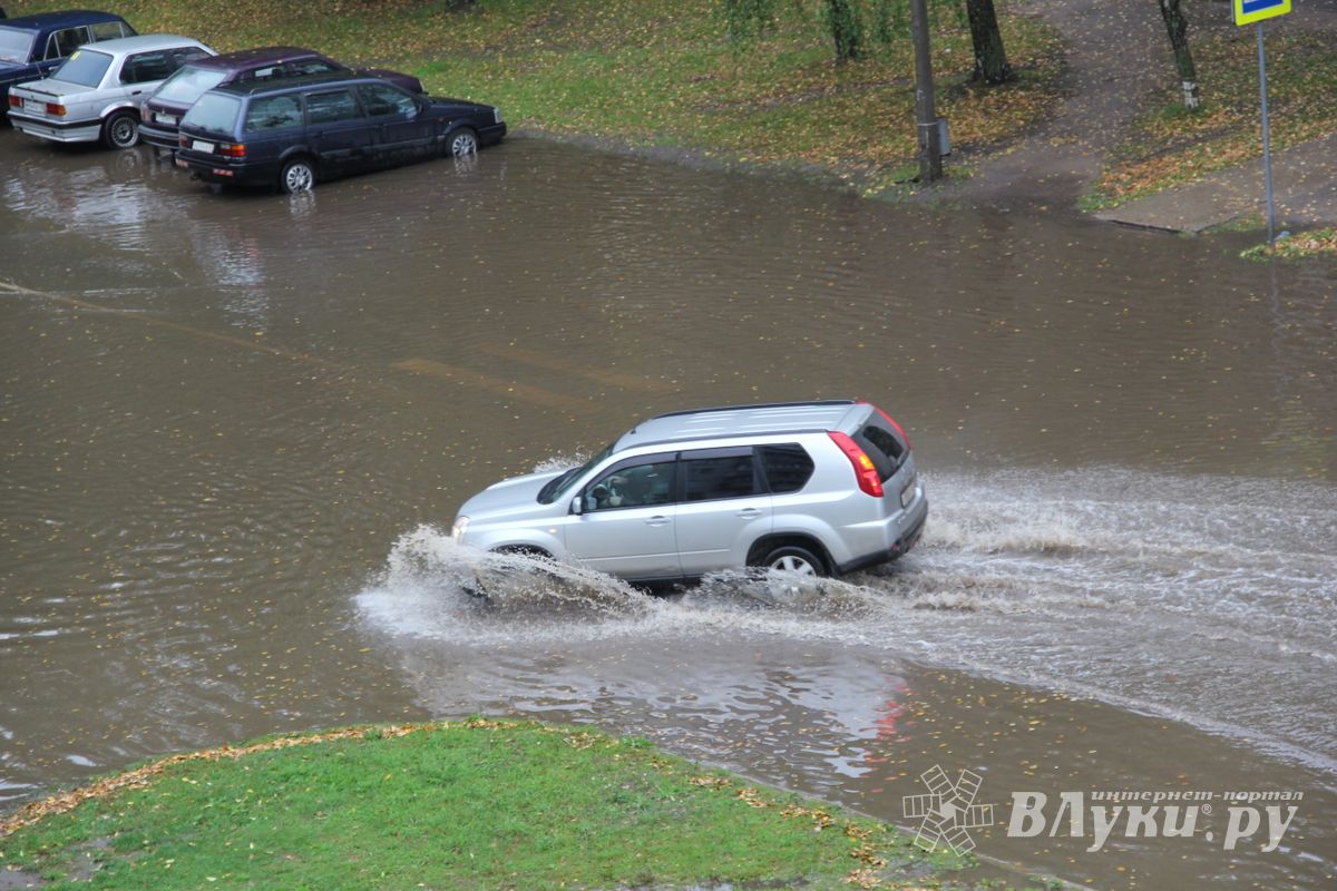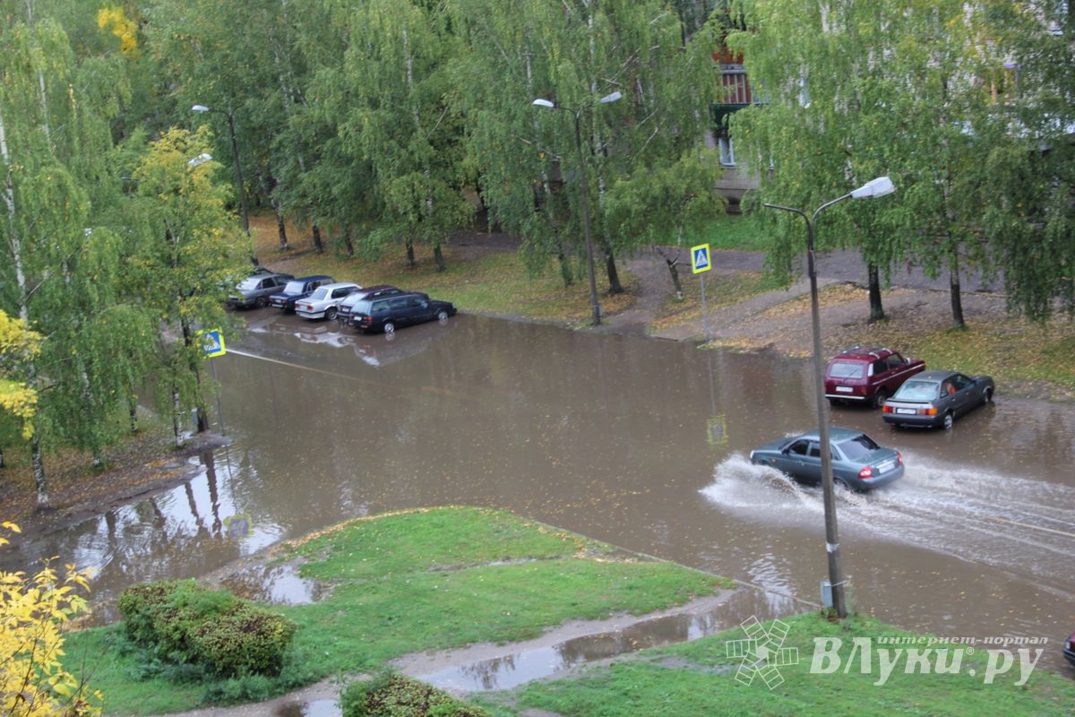 В Великих Луках на ул. Гоголя, в районе домов №10/15 и №12, затопило проезжую часть. Полностью ушел под воду пешеходный переход. Затруднено движение.
