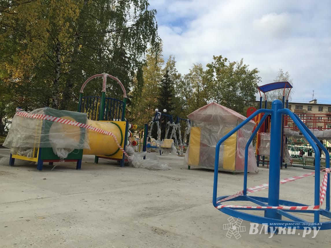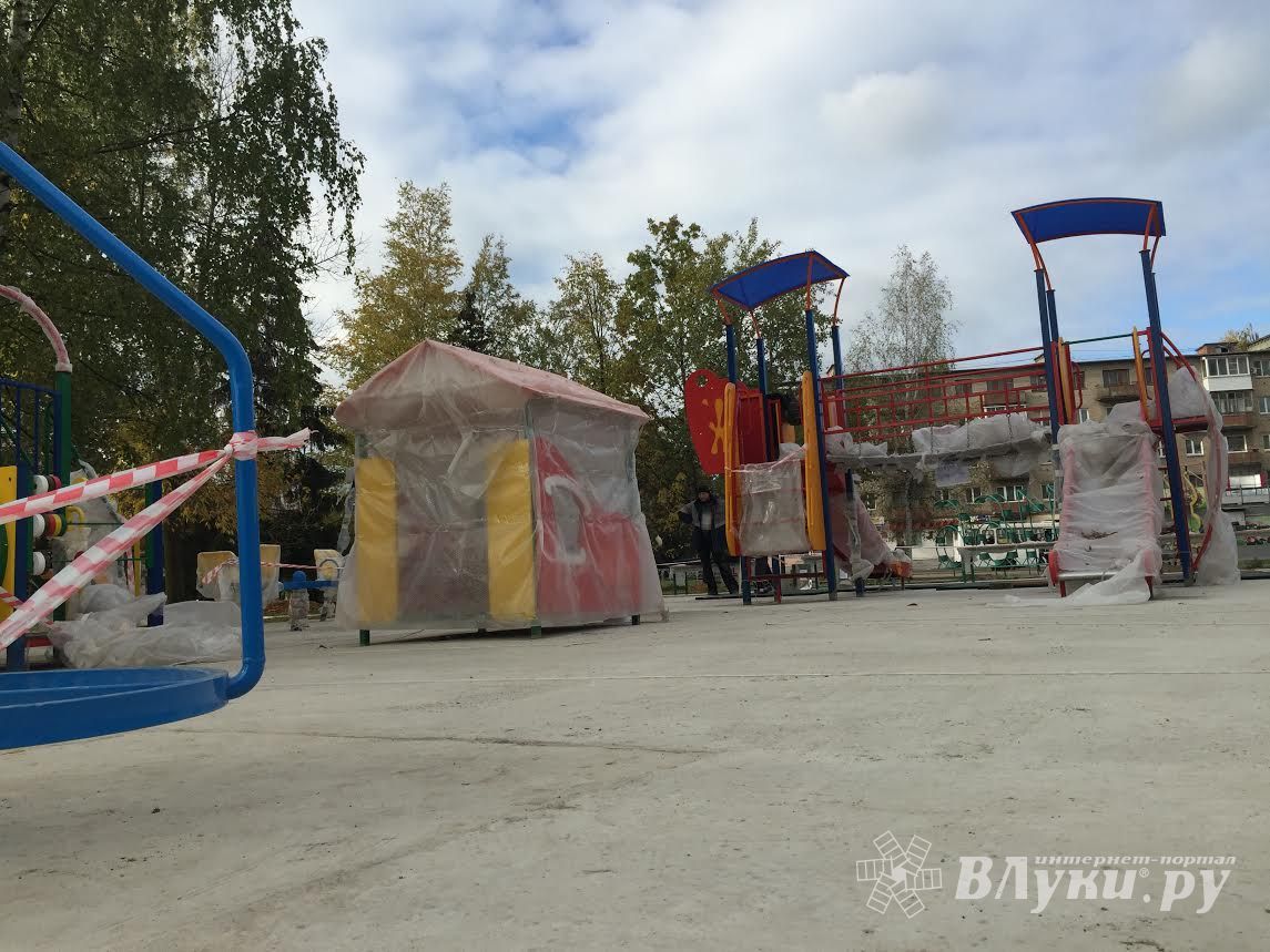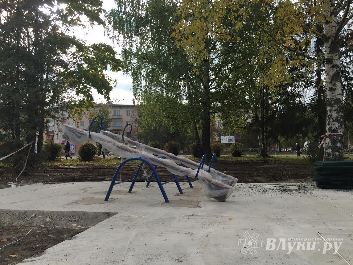 В Великих Луках продолжаются работы по благоустройству сквера на площади Калинина. На данный момент идут монтажные работы на детской площадке.