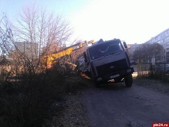 В Невеле во дворе по ул. Комсомольской грузовик провалился под землю. Соответствующие фото опубликованы в группе «ВКонтакте» «НЕВЕЛЬ - the best of the best», сообщает ПЛН.
