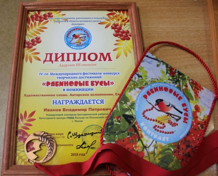 Лауреатом завершившегося в Подмосковье IV Международного фестиваля-конкурса творческих достижений «Рябиновые бусы» стал сотрудник УМВД России по Псковской области.