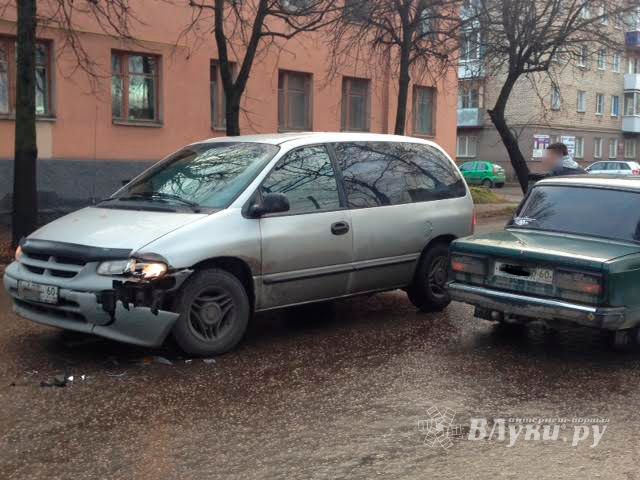 В Великих Луках на углу Некрасова-Ботвина произошло ДТП: столкнулись Крайслер Вояджер и Ваз седьмой модели. На данном участке дороги затруднено движение.