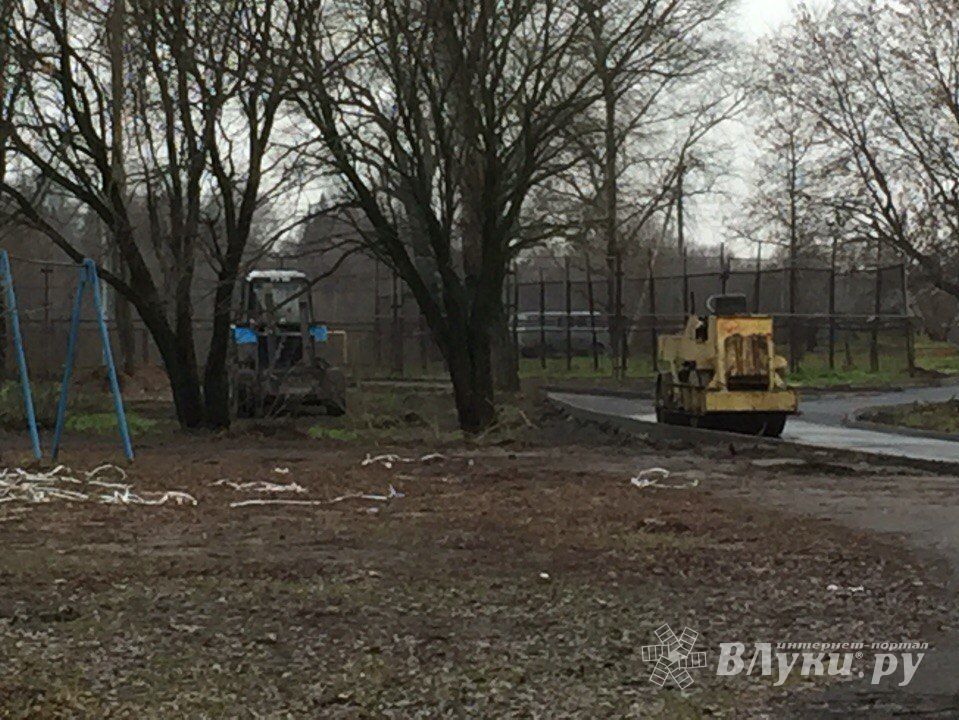 В Великих Луках продолжаются работы по благоустройству территории острова Дятлинка. На данный момент ведется укладка асфальта.