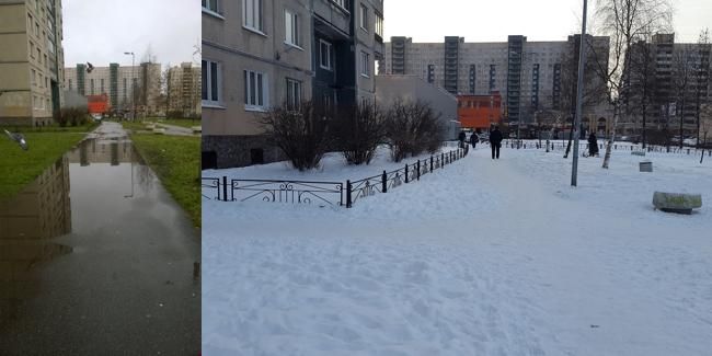В Петербурге есть портал «Наш Санкт-Петербург», на котором жители могут указывать на неубранный мусор, поврежденную дорогу, лужи на тротуаре и так далее. А коммунальщики должны там же отчитываться об исправлении недостатков. Однако петербуржец Артем Стахиев обнаружил, что иногда ленивых коммунальщиков выручает погода. Стоит только подождать.
