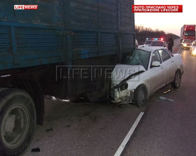 ДТП произошло в среду утром на 665 км трассы М4 «Дон». По предварительным данным, столкнулись грузовик «ДАФ», «ВАЗ-2111» и «ВАЗ-2109». Следовавший за ними водитель «КамАЗа» притормозил, увидев столкновение, и в грузовик врезалась Lada Priora.