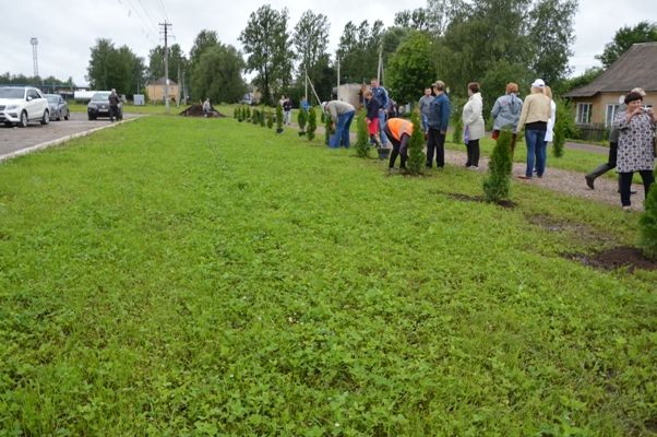 В 75-ю годовщину со дня трагической гибели мирных жителей во время первой бомбежки 1941 года, у мемориального комплекса «Скорбящий ангел» вдоль аллеи памяти в г. Дно торжественно были посажены вечнозеленые туи.