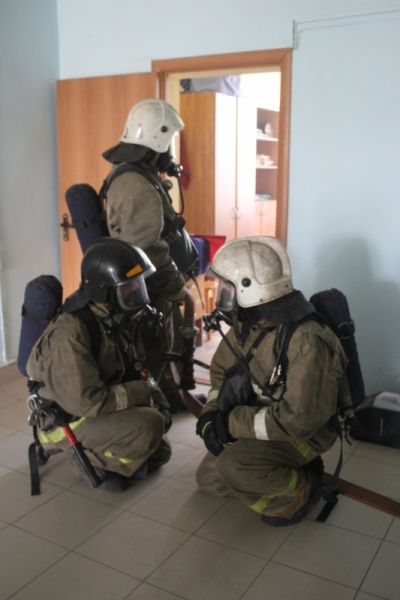 Затем, после разведки обстановки, для ликвидации обнаруженных очагов пожара на других этажах здания, на место условного пожара прибыли караулы пожарно спасательных частей № 1 и №2. Организовано тушение пожара, после чего - условные возгорания на этажах полностью ликвидированы. На месте пожара были задействованы 24 человека личного состава, 3 звена газодымозащитной службы и 4 единицы техники.