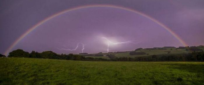 В Англии, в долине реки Кокет, во время грозы мужчина сфотографировал редкое природное явление — лунную радугу, сообщает ABC News.