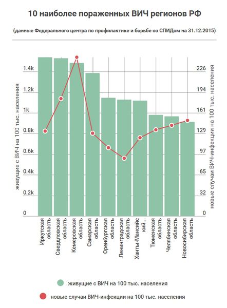 «Есть 10 регионов критических, на первом месте - Свердловская область, Екатеринбург, который попадал в прессу (в связи с этим) в последнее время», - сказала министр. По ее словам, в этих субъектах Федерации «распространенность (ВИЧ) существенно выше, чем в других регионах».