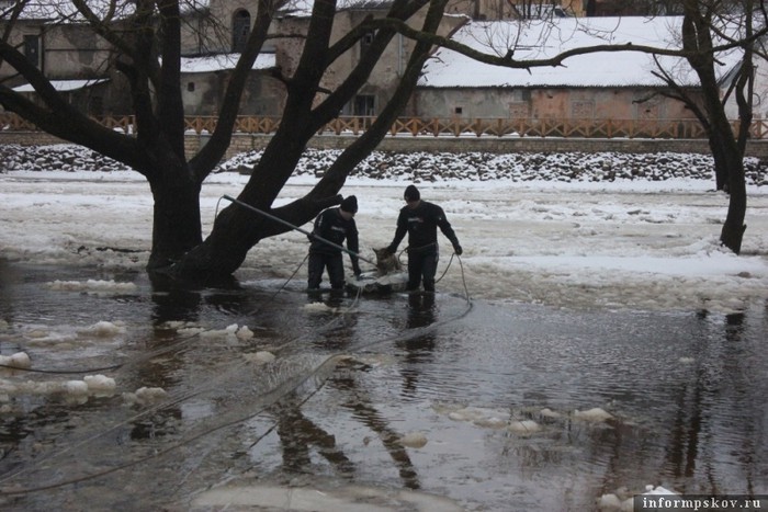Позже дежурная группа аварийно-спасательной службы города Пскова спасла собаку.