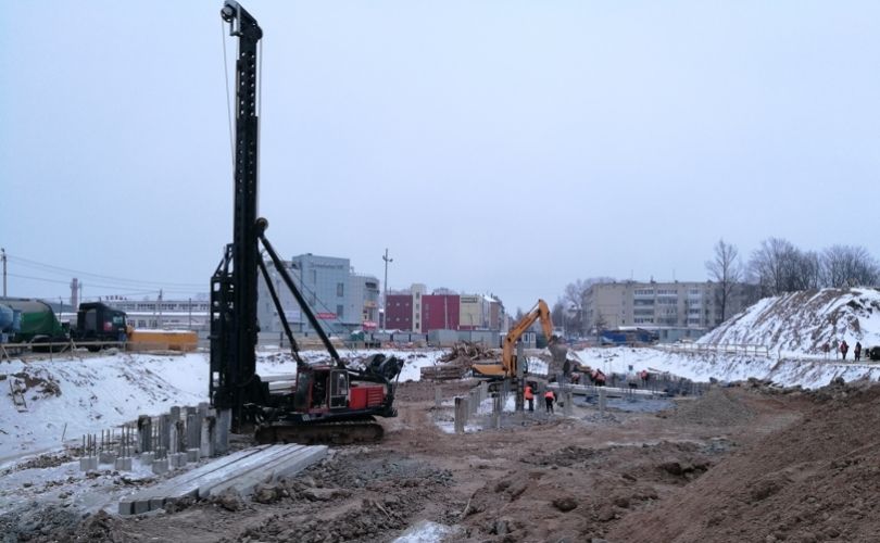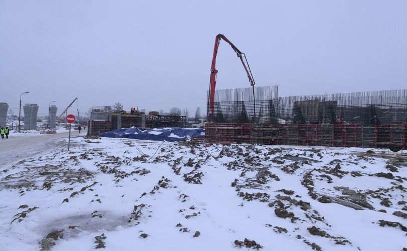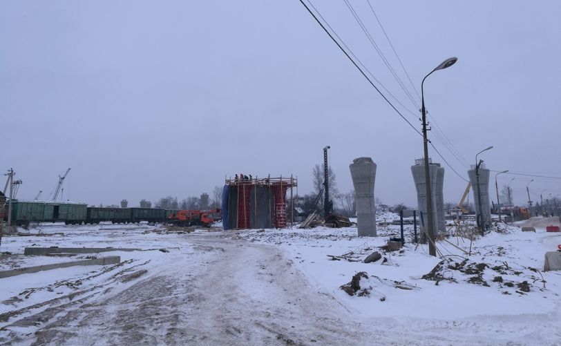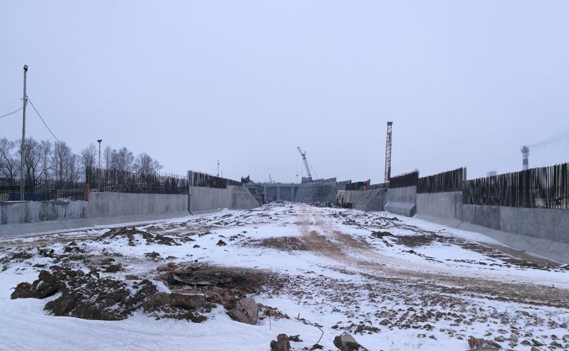Одновременно, на разных участках строительства, производятся работы как по сооружению подпорных стен и промежуточных опор основного путепровода, так и по возведению путепровода тоннельного типа и эстакады въезда.