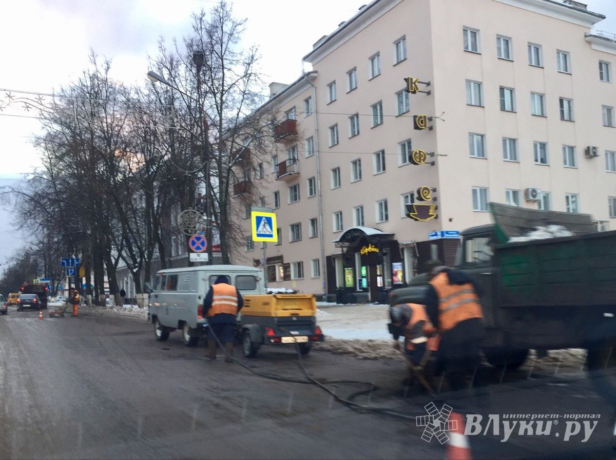 В Великих Луках, в районе центрального городского моста, на проспекте Ленина затруднено автомобильное движение, так как на данном участке проводятся дорожные работы, производится ямочный ремонт.