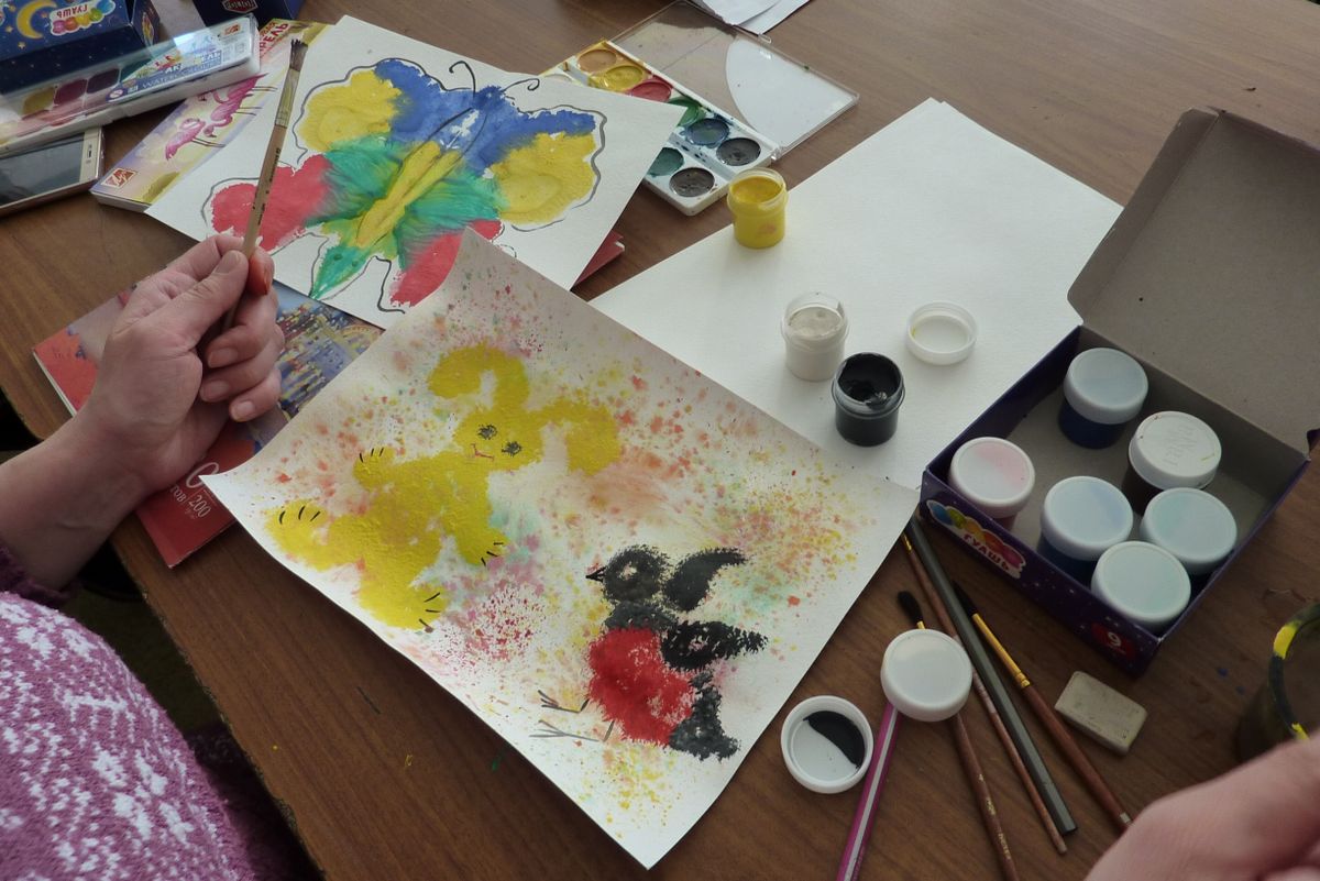 Речь шла о таких техниках как: набрызг, монтипия, рисование по мокрому фону и методом тычка.