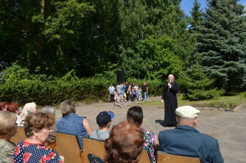 С приветственным словом к собравшимся на торжество в деревне Русаново обратились иерей Свято-Вознесенского кафедрального собора г. Великие Луки Антоний Татаринцев, Глава Переслегинской волости Васягина Ольга Анатольевна, председатель колхоза имени Куйбышева Варуев Шамхан Зандиевич.