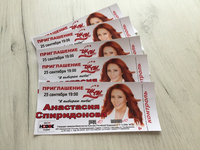 3. 22 сентября в 12:00 генератор случайных чисел выберет пять победителей из числа участников, которые получат по 1 билету на концерт и эксклюзивное селфи с Анастасией Спиридоновой!