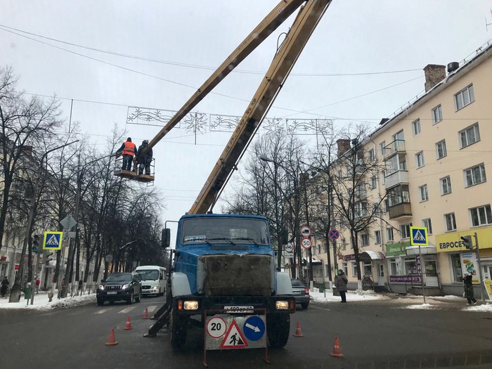 Сегодня в Великих Луках на проспекте Ленина демонтируют новогодние украшения.
