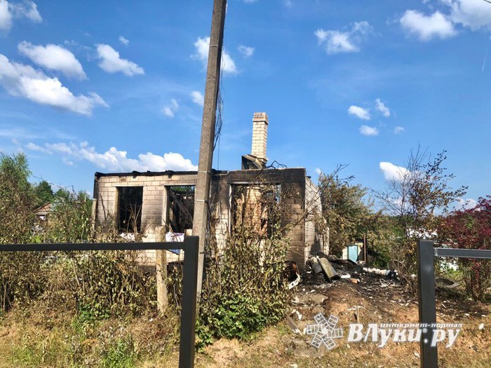 Как сообщили интернет-порталу ВЛуки.ру собственные источники, хозяева дома, оставив включенными электроприборы, отправились искупаться, однако когда вернулись — вместо дома обнаружили пепелище. По предварительной информации причиной возгорания стало короткое замыкание.