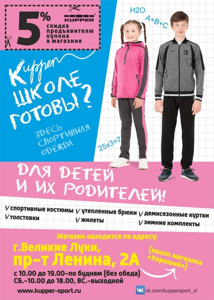 Магазин «Kupper» предлагает для детей и их родителей широкий выбор спортивной одежны: