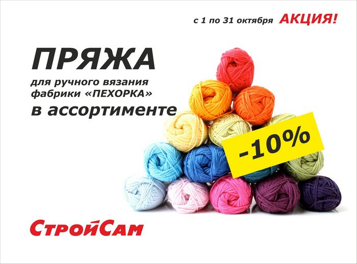 Весь октябрь действует скидка 10% на пряжу для ручного вязания фабрики «Пехорка»!