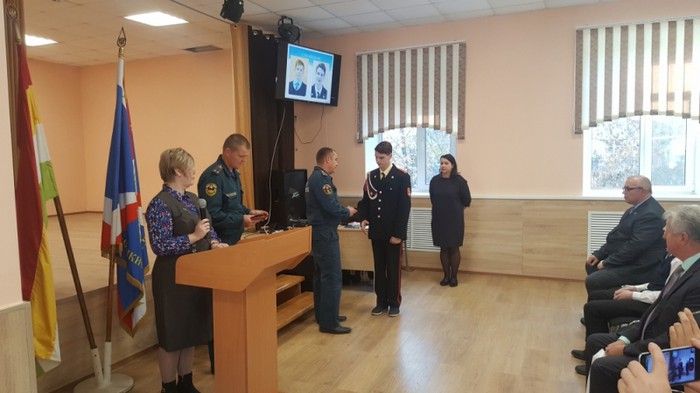 В великолукском лицее №10 16 октября состоялась церемония награждения медалями МЧС России. Заслуженные награды были вручены заместителем начальника Главного управления МЧС России по Псковской области по государственной противопожарной службе Андреем Никулиным учащимся 7 «К» класса Никите Смирнову и 6 «А» класса Егору Иванову.