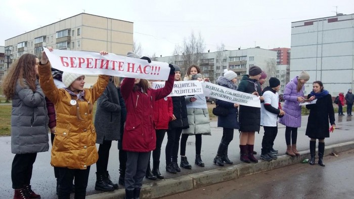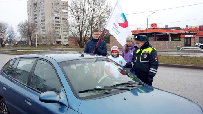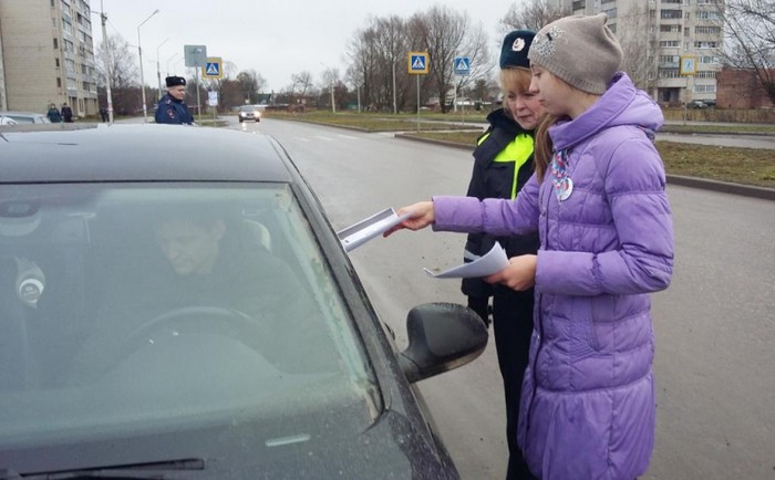 В Великих Луках подростки раздавали водителям и пешеходам листовки с призывом быть предельно внимательными к детям на дороге.