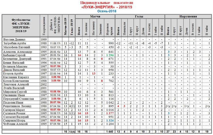 Они защищали честь «Луки-Энергии» в Первенстве России группы «Запад» ПФЛосень-2018.