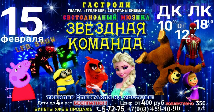 Впервые в Великих Луках только один день, 15 февраля, в ДК ЛК — светодиодный мюзикл «Звёздная команда» (0+).