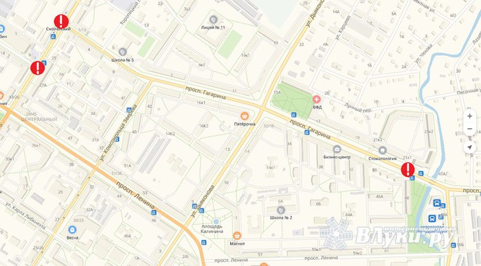 - на пр. Гагарина в районе д. 21, корп. 1 («Молочная кухня»);