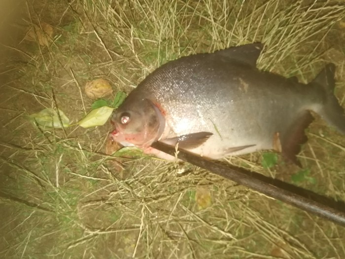Выдернул из берега рогатку, подцепил за жабры и на берег. На руке к двум кило. Гугл нам в помощь - и вот результат: сия рыба называется Бурый Паку, семейство пираньевых, водится в Амазонке.»