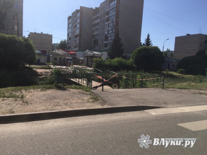 На ул. Вокзальной в Великих Луках ремонтируют пешеходный мостик через ручей Ситовка. Работы ведёт бригада городского МП «Спецавтохозяйство».