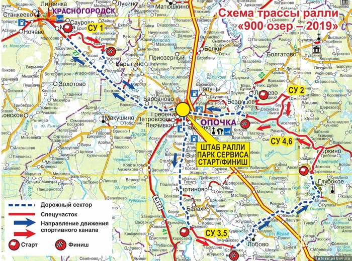 Заявки на участие в ралли «900 озёр» подали более 50 экипажей из Москвы, Санкт-Петербурга, Комсомольска-на-Амуре, Ярославля, Тулы, Смоленска, Перми, Екатеринбурга, Минска (Белоруссия), из Пскова и Великих Лук. Им предстоит проехать около 260 километров по дорогам Опочецкого и Красногородского районов, из которых порядка 82 километров – протяжённость скоростных участков.