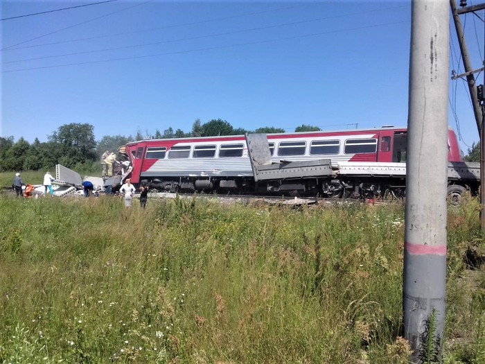 Проигнорировав запрещающие сигналы, водитель тягача с полуприцепом, перевозившего железобетонные плиты, выехал на железнодорожный переезд перед приближающимся рельсовым автобусом. ДТП повлекло за собой тяжелейшие последствия: машинист и его помощник погибли, остальные работники, находившиеся в поезде, были госпитализированы. В результате столкновения рельсовый автобус, сошедший с рельсов, поврежден до состояния исключения из инвентарного парка, получила повреждения железнодорожная инфраструктура.