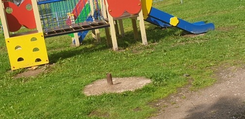 4. Двор на ул. М. Кузьмина - обращались в УЖКХ центральное, толку нет! Уберите глыбу цементную на детской площадке и штырь металлический!»