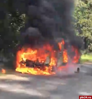 На трассе в Псковской области сгорел микроавтобус (ВИДЕО)